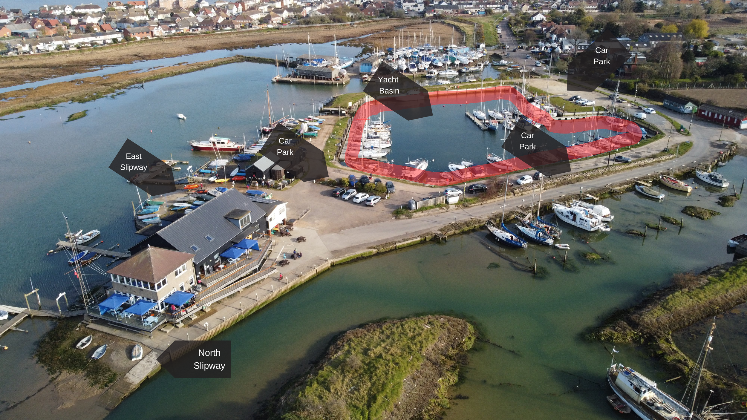 We have a number of different parking areas. Please note, the spaces by the front of the club can be covered by water at high tides.